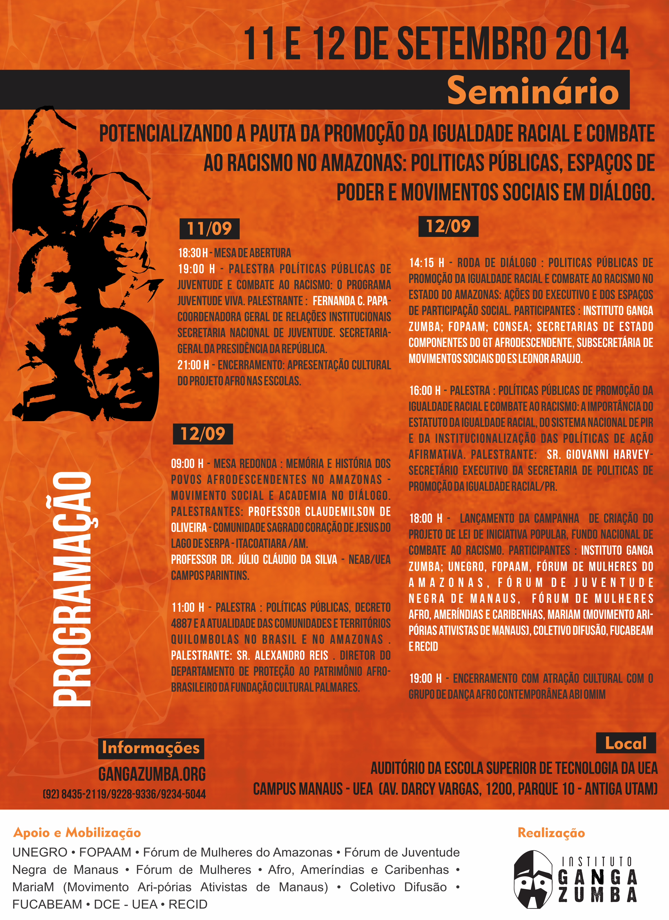 SEMINÁRIO: Potencializando a Pauta da Promoção da Igualdade Racial e Combate ao Racismo no Amazonas: Politicas Públicas, Espaços de Poder e Movimentos Sociais em Diálogo.