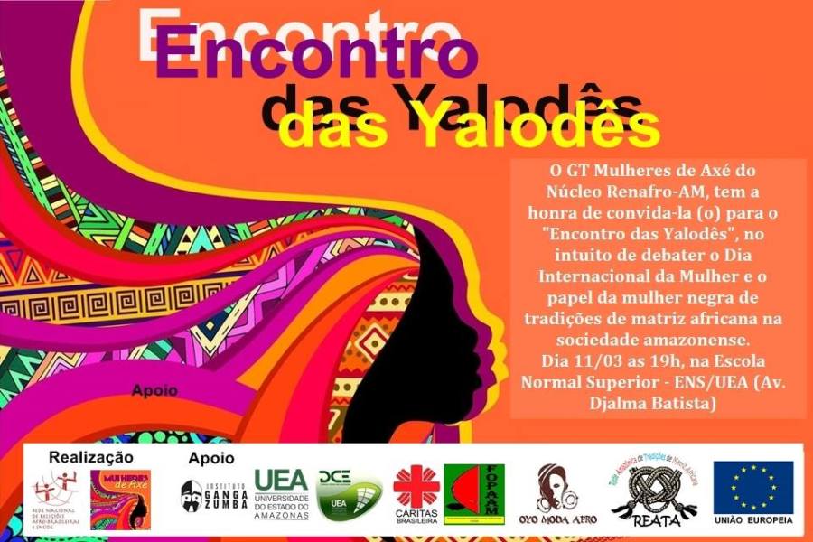 A Rede de Nacional de Religiões Afro-Brasileiras e Saúde Renafro Núcleo AMAZONAS,realizará nesta próxima sexta-feira dia 11/03/2016 as 19:ooh no auditório da escola normal superior- UEA o Encontro das Yalodés , o evento é em homenagem ao dia internacional da mulher, o nome Yalodés é de origem yoruba dialeto/língua usado por alguns países do continente africano mais precisamente em Oyo cidade da Nigéria, que tem grande influencia nas tradições ancestrais e Afro-Brasileiras também conhecido como Candomblé.